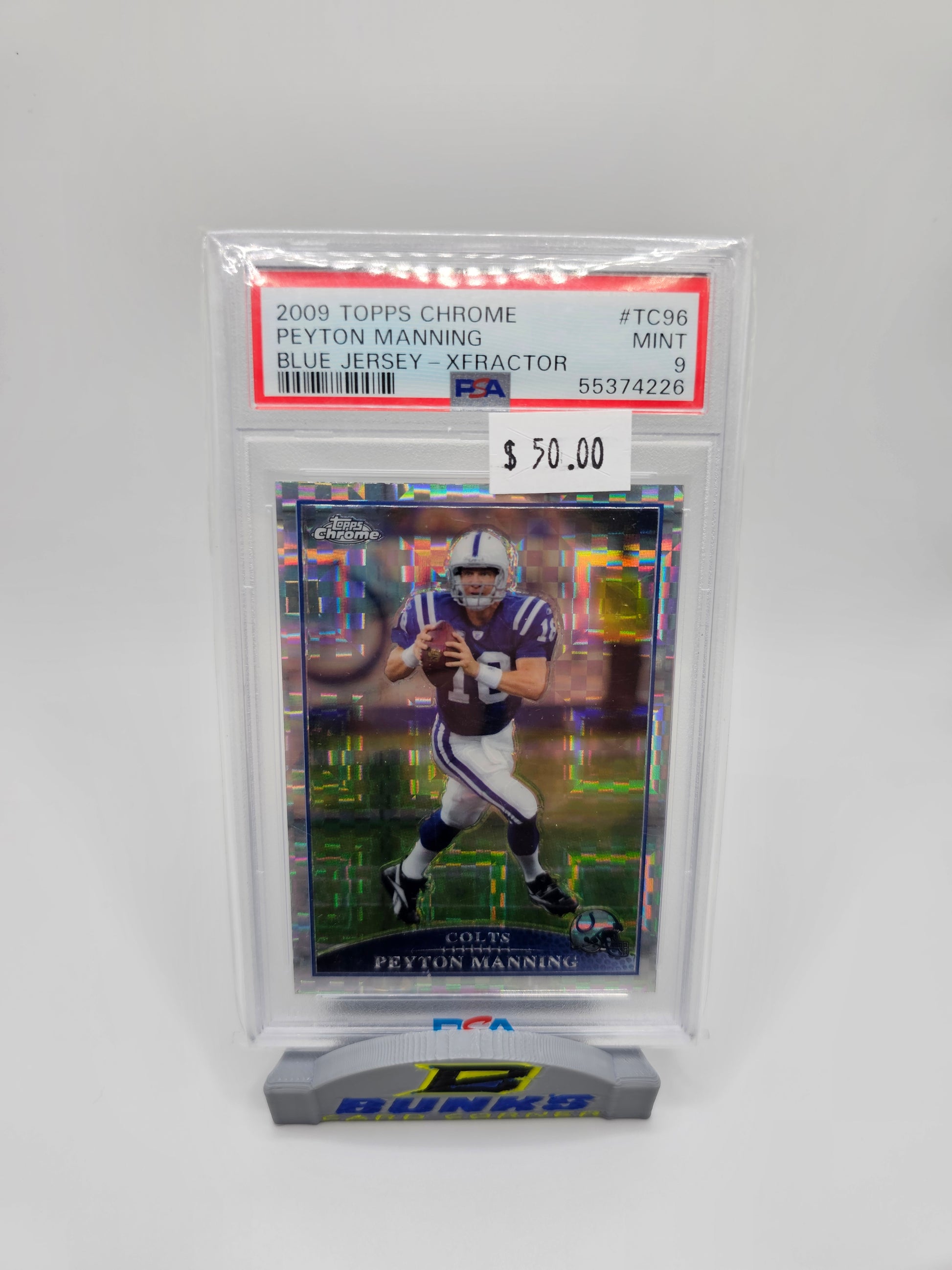 2009 Peyton Manning Topps Chrome Blue Jersey X-Fractor PSA 9