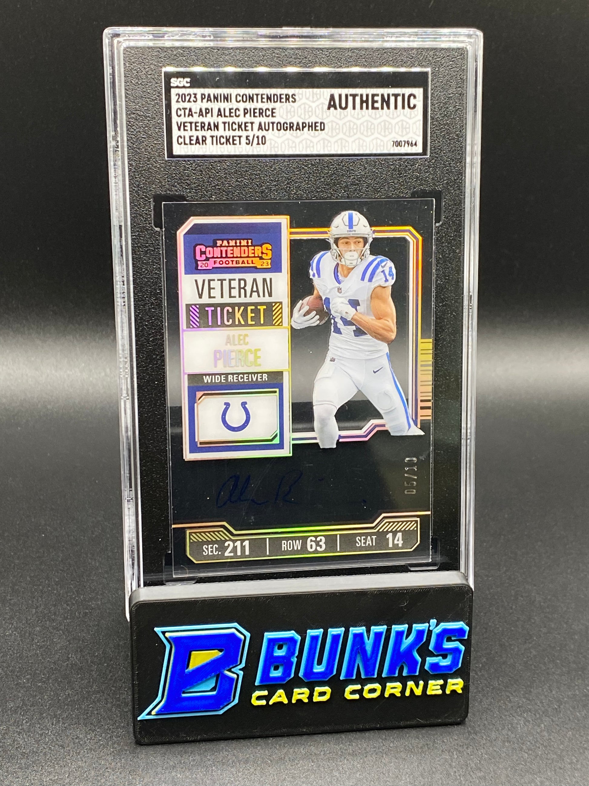 2023 Alec Pierce Veteran Ticket Auto. Clear Ticket SGC Authentic